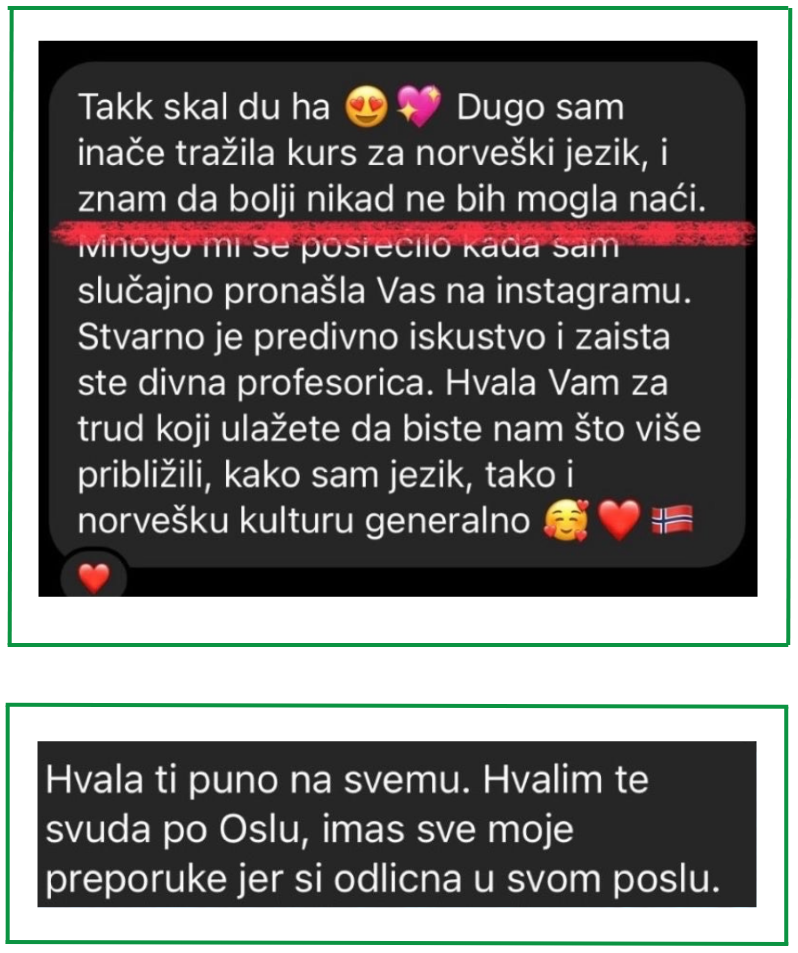 Do sada sam radila sa više od 100 zadovoljnih učenika s cele teritorije Balkana i Italije. Autor sam inovativnih programa za učenje norveškog jezika i docent na Nordijskom institutu u Milanu.